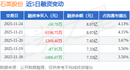本站消息,11月24日,石英股份(603688)融资买入2228.84万元,融资偿还2279.55万元,融资净卖出50.7万元,融资余额8.07亿元。