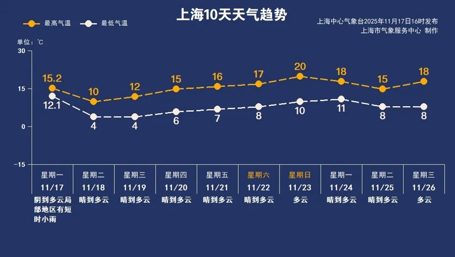 周三至下周初,冷高压“霸屏”,申城全程晴+干燥max!周三、周四辐射降温发力,市区早间4~6℃,郊区0~2℃,局部有薄冰(早起通勤注意路面防滑);周日直接冲到20℃,暖回舒适区间。